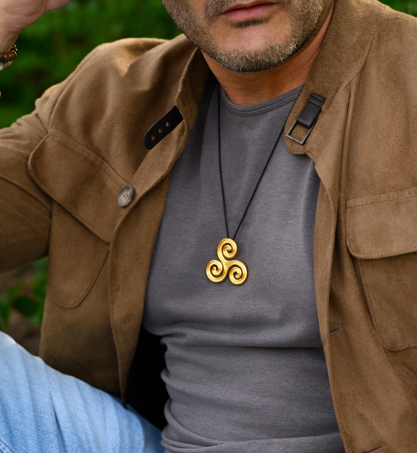 Embrace the ancient wisdom of Celtic tradition with this magnificent Triskele Pendant, masterfully handcrafted from 99.99% pure 24-karat gold in the heart of America. This timeless symbol, representing the sacred patterns of threes that weave through all aspects of life, captures millennia of Celtic heritage in every gleaming curve and flowing line. Our artisans have meticulously worked-hardened this bullion-grade gold to create a piece that transcends mere jewelry—it becomes a wearable heirloom designed to grace generations.