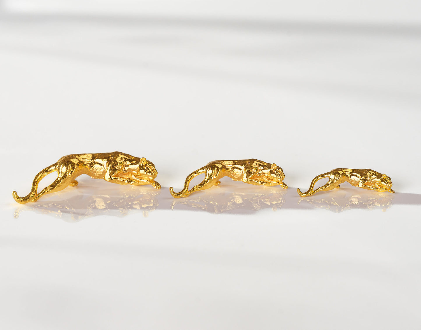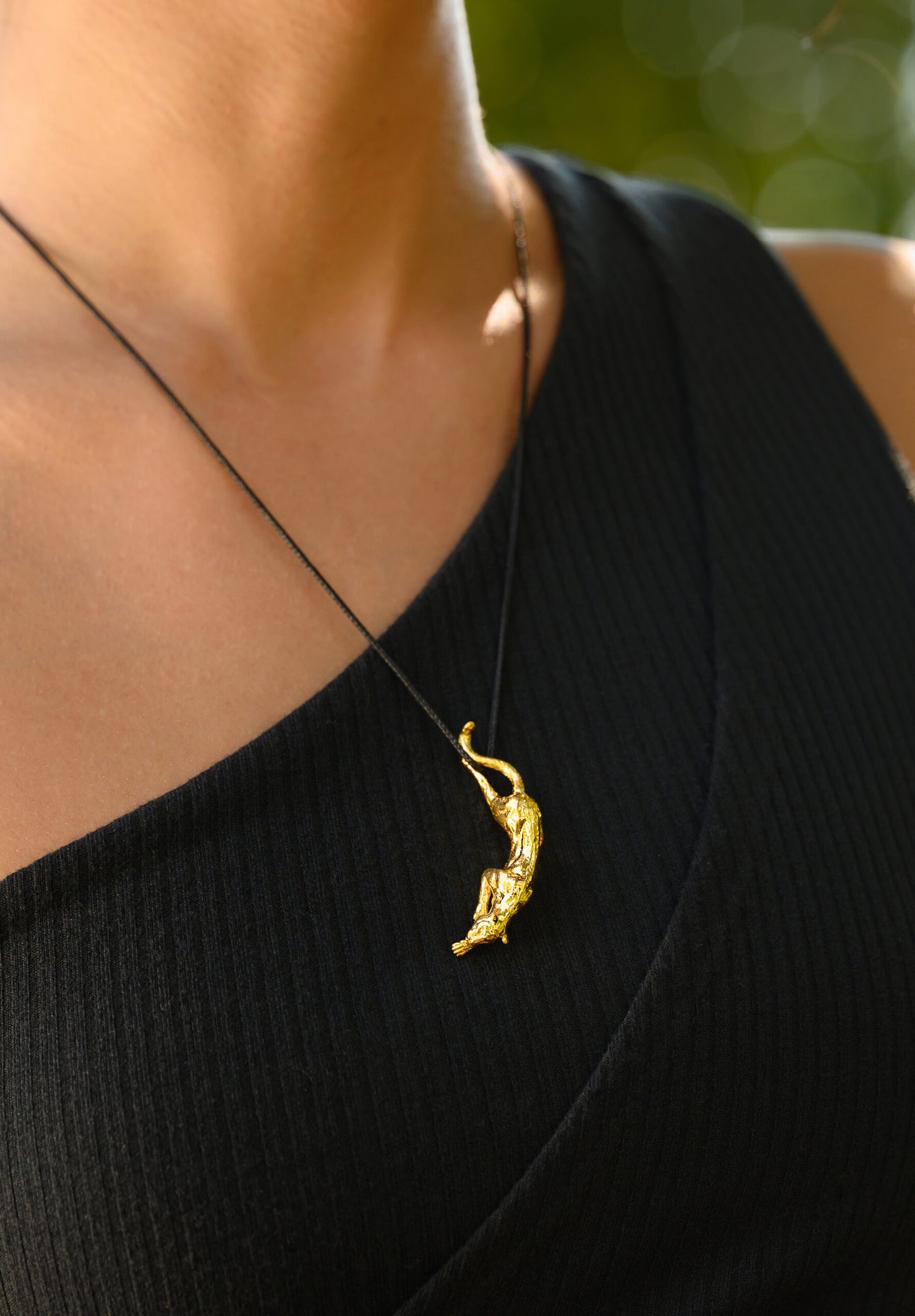 Embodying the raw power and fluid grace of nature's most magnificent predator, the Panther in Motion Pendant captures pure elegance in 99.99% fine gold. This extraordinary piece flows with sinuous beauty, its organic curves designed to hang without interruption—no traditional bale mars its perfect silhouette. Handcrafted in the USA with meticulous attention to every detail, each pendant undergoes our proprietary work-hardening process that transforms pure gold into a durable masterpiece built for generations.